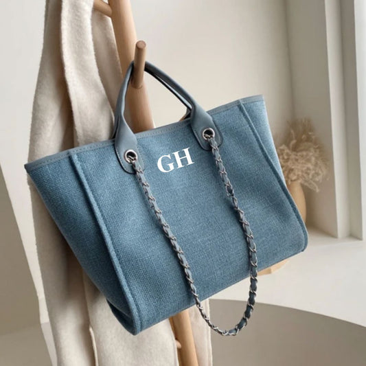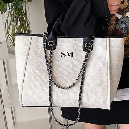 MEDIUM Personalised Chain Monogram Canvas Tote Bag