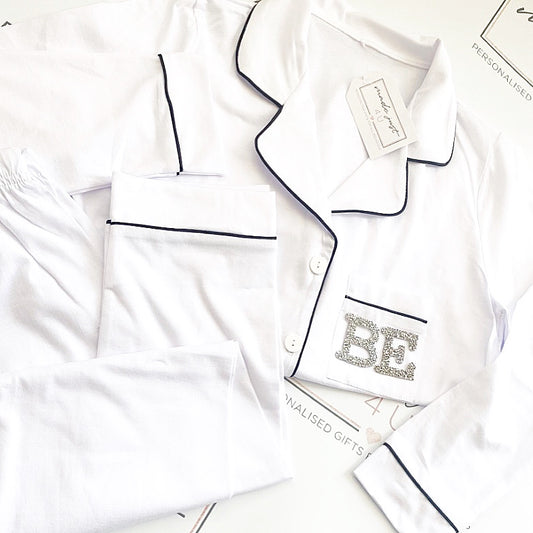 Personalised Long Cotton Pyjamas Patch initials Detail