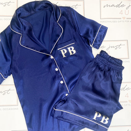 Satin Short Pyjamas with piping detail & Initials or Name